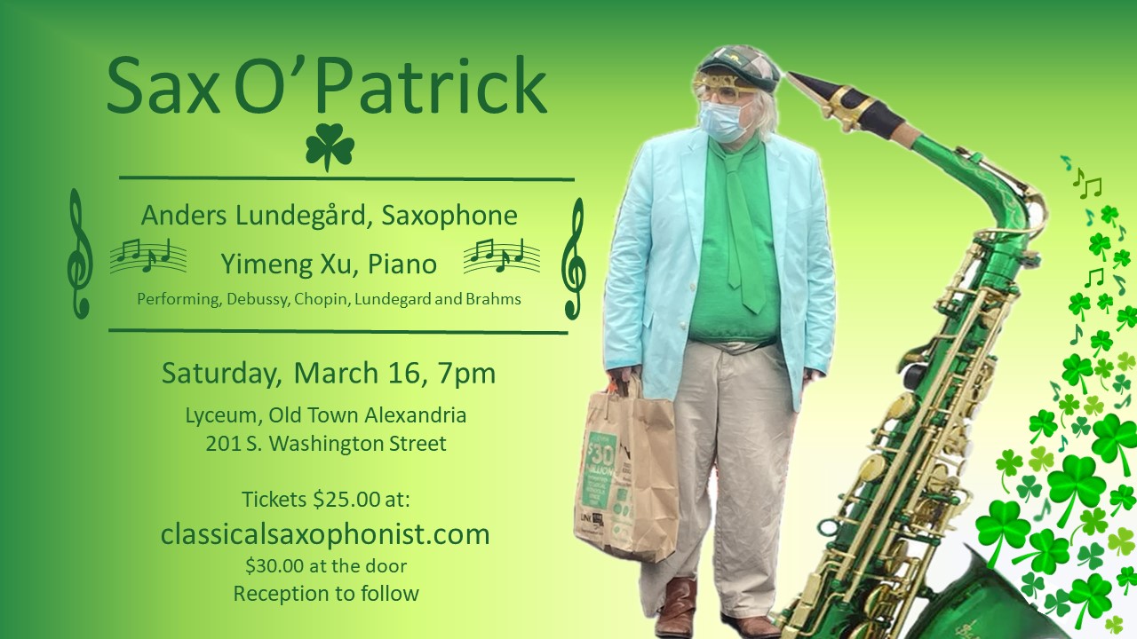 January 8, 2005, The Lars-Erik Lasrson Concerto for Alto Saxophone at the Saxophone Symposium, George Mason University, Fairfax, Virginia